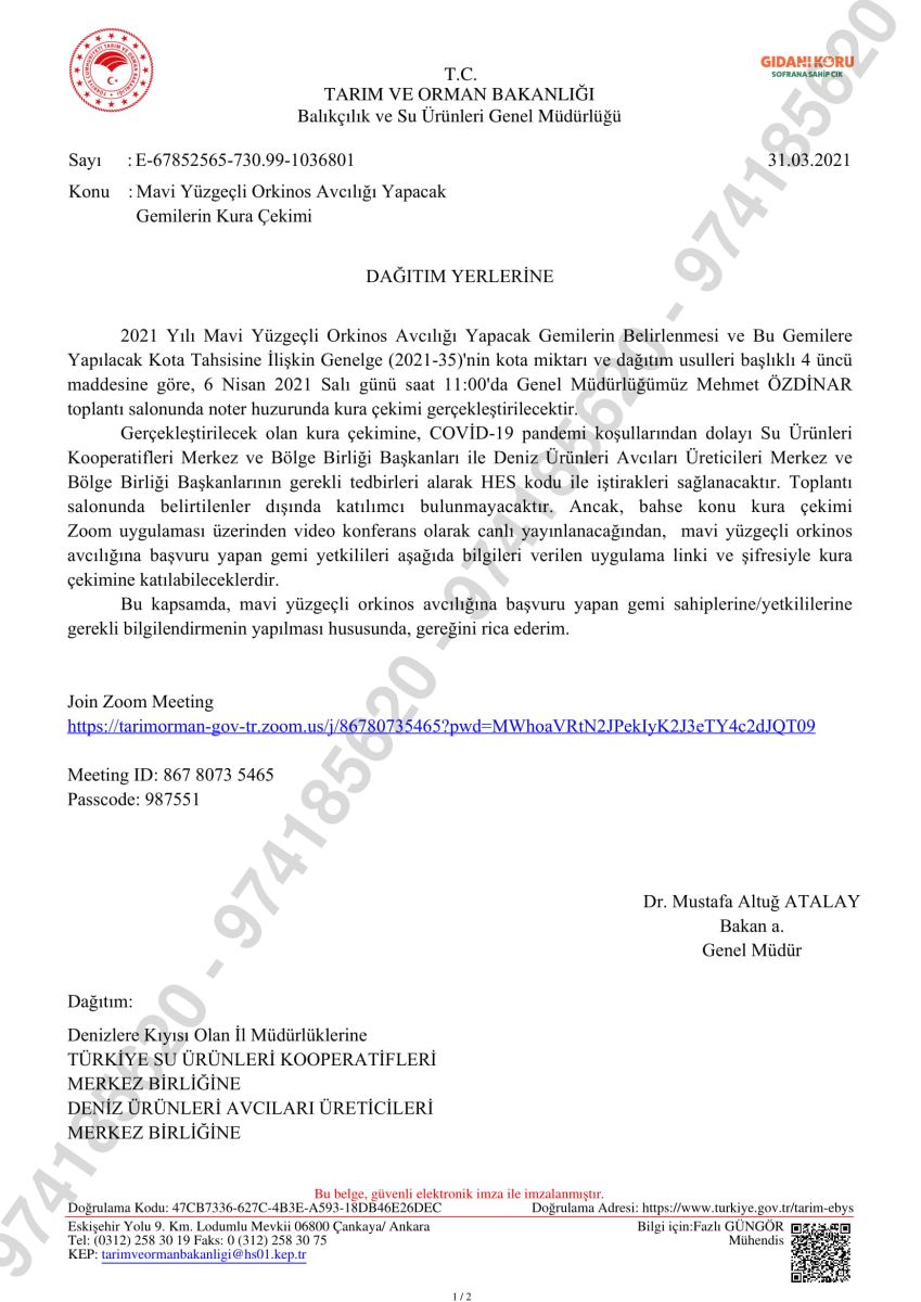 MAVİ YÜZGEÇLİ ORKİNOS AVCILIĞI YAPACAK GEMİLERİN KURA ÇEKİMİ